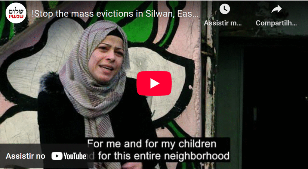 PAZ AGORA: “Esta é uma emergência real. Se o governo não intervir, e se não for exercida pressão sobre ele para agir, poderemos testemunhar nas próximas semanas famílias literalmente jogadas na rua e colonos tomando seu lugar. Esta é uma injustiça terrível, baseada em leis discriminatórias e na exploração e marginalização contínuas dos residentes da Jerusalém Oriental. A desapropriação de palestinos de suas casas compradas legalmente em Silwan, sob o pretexto de realizar um “direito de retorno” para os judeus, é uma mancha indelével no Estado de Israel. O governo pode e deve impedir a expulsão forçada de uma comunidade inteira…”
