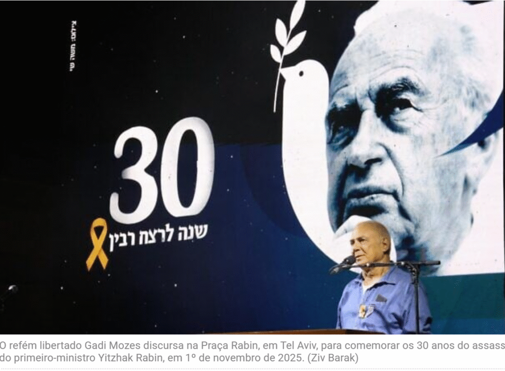 Neste sábado 01/11/2025, um comício excepcionalmente comovente foi realizado em Tel Aviv para rememorar o 30º aniversário do assassinato do primeiro-ministro Yitzhak Rabin. Mais de 150.000 pessoas se reuniram para o maior evento pela paz nos últimos 30 anos. O comício não apenas honrou a memória de Rabin, mas também foi um poderoso lembrete da força e determinação das pessoas que lutam nas ruas há mais de três anos pela democracia de Israel e pelo retorno dos reféns. Demonstrou que nosso campo tem uma visão de liderança corajosa e responsável, uma visão de paz e coexistência.